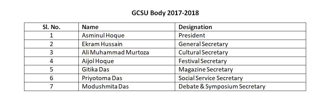 | 5 | Ashif Hussain | Cultural Secretary |